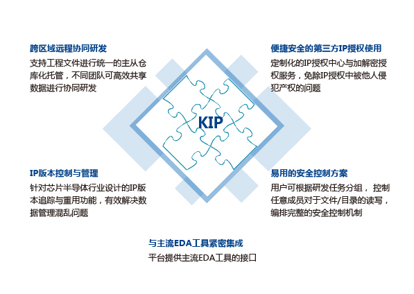 基于知識(shí)產(chǎn)權(quán)保護(hù)的協(xié)同研發(fā)與IP數(shù)據(jù)管理平臺(tái) 用戶(hù)友好的IP追溯與重用系統(tǒng),支持網(wǎng) 頁(yè)端操作,提供IP版本標(biāo)定,發(fā)布,重 用,文件倉(cāng)庫(kù)管理,主干分支操作,記 錄回滾,文件對(duì)比, IP加解密及授權(quán)管理等功能。